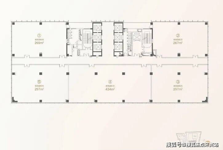 研发办公 创享海洋经济梦想研发办公A座 约2.7万㎡,22层,标准层约1565㎡,每层5户,户型面积区间约267-434㎡,方正实用,可灵活组合,层高4m,荷载300kg/㎡。