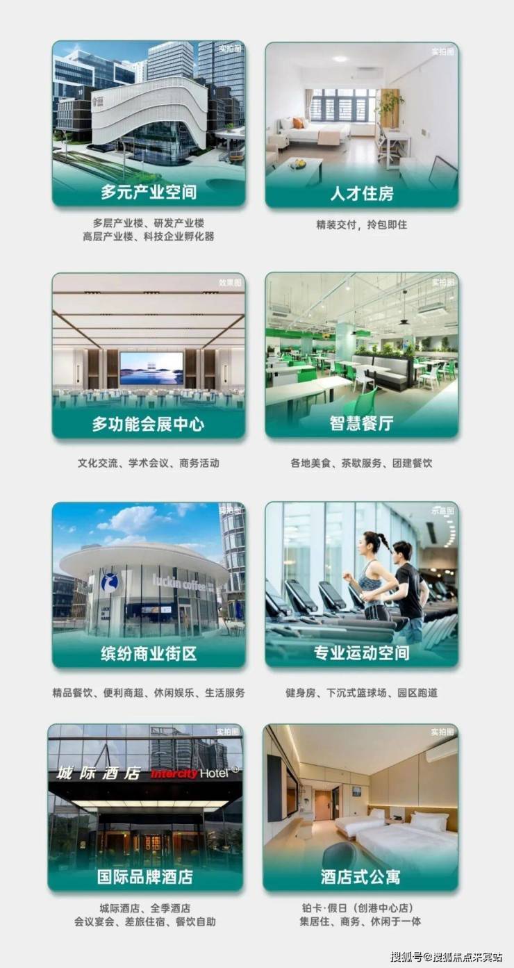 园区配备多功能会展中心、国际品牌酒店、商业、人才公寓、智慧餐厅、运动休闲空间等,满足24小时产城人生活圈全系需求,为企业和员工打造商务休闲一体的园区美好生活。