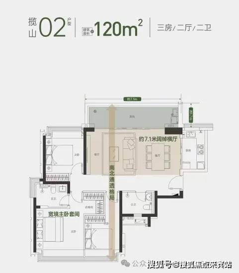 建面约120㎡三房两厅两卫:横厅户型看山景,竖厅户型近北环大道。无论你选择哪种户型,都能享受到开阔的视野和舒适的居住体验。
