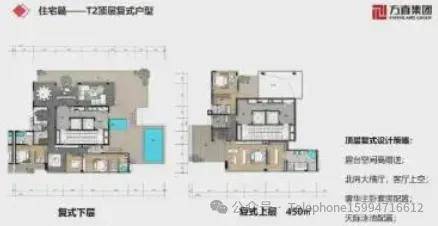 建面约450㎡顶层复式:作为项目的顶级产品,顶层复式户型不仅拥有超大的居住空间,还配备了私人露台和车库等高端设施,让你的生活更加尊贵与私密。