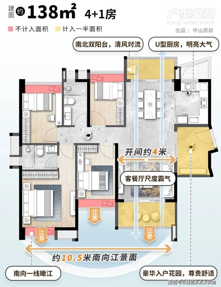最后来看建面约138㎡4+1房,产品力也硬核。