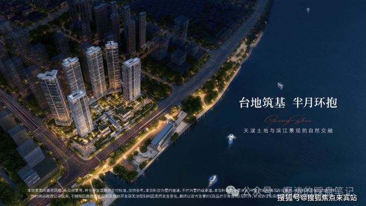 项目地势做了整体抬升,整体排布北高南低,呈半月型布局,共计6栋住宅。前低后高,前排2栋分别为35层和37层,后排4栋从东往西分别是50层、49层、49层和50层,前高后低的设计,以及后排两栋楼的扭转,也实现了100%望江,货量共约500来套。