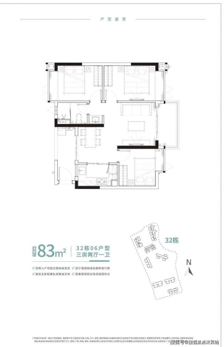 此次广地花园·观灏加推的新品32栋悦景楼座,面积段分别为86m²、96m²、100m²悦景三房,多面采景,三面望水,通透采光,充分利用户型的每一寸肌理,以有限的生活空间焕发更多生活灵感,打造全方位人性化居所。