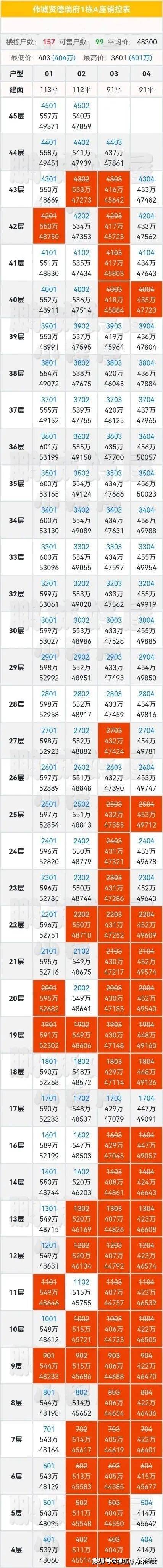 备案价格表:剩余99套、备案了58套、去化率36.94%。