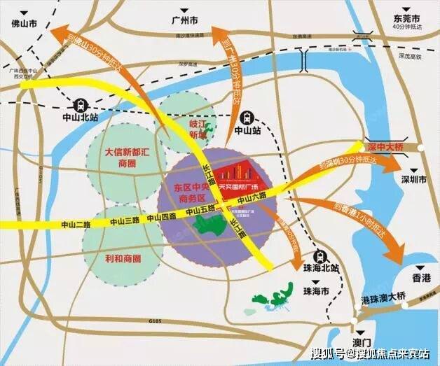 天奕国际广场,雄踞中山城市东,即中山路与生态中轴长江路交汇处,天奕国际广场BRT站,B1、B11线路途经;实验中学公交站,023路、208路、12路途经;长江北联通站,1路车途经;广珠城轨——中山站。