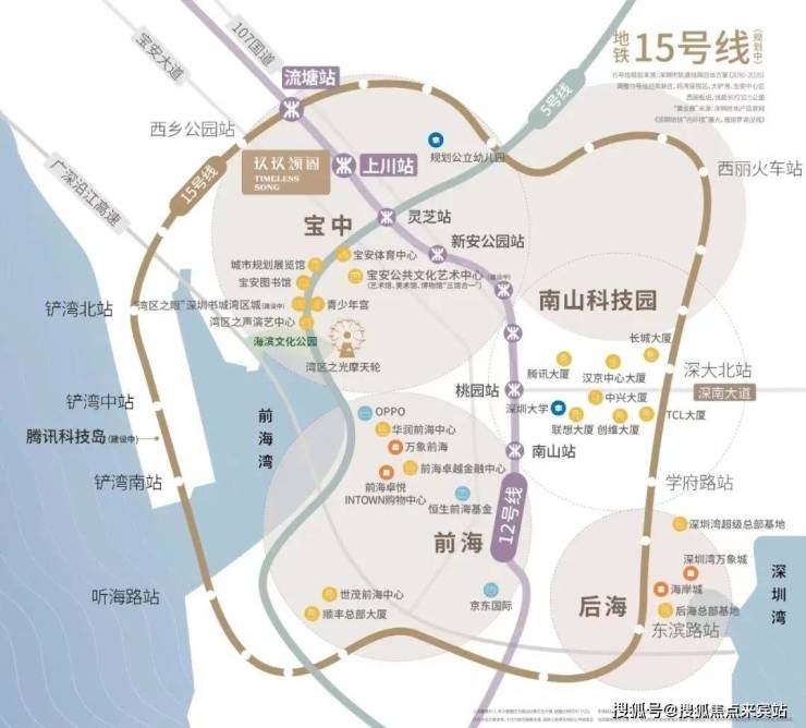 实现了深圳重要经济总部人才的流通,通过地铁3站到宝中,6站到南山,10站可达福田。开车出行通过新安四路转宝安大道,107国道15分钟可到前海宝中,连接北环、滨海、深南,20分钟可达南山,30分钟可达福田。