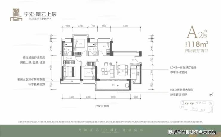 🈶118m²四房折后单价4.41~5.7万,总价520万~672万