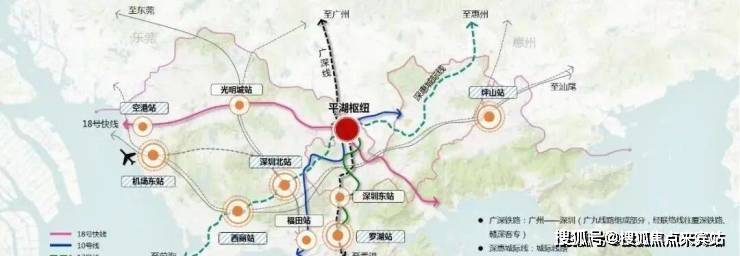 根据龙岗十四五规划,平湖将重点打造两大枢纽:平湖枢纽、白泥坑枢纽。离我们比较近的是平湖枢纽,这里汇聚四条轨道: