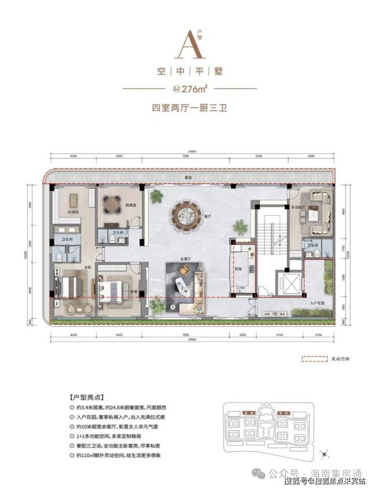 产品户型:建面约230-246㎡花园式合院,建面约276㎡空中平墅