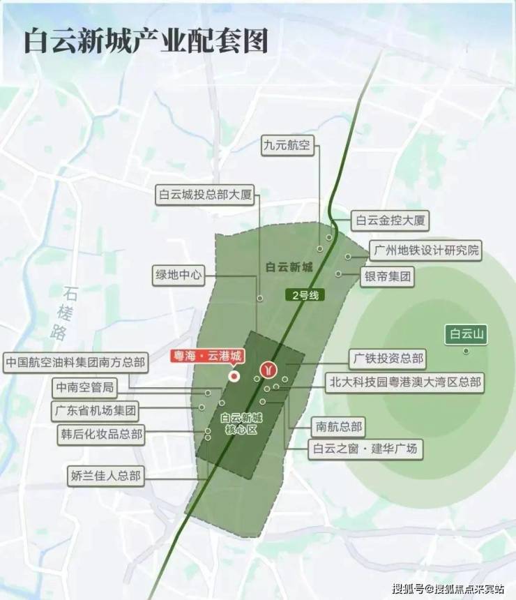 粤海·云港城坐落于白云新城CBD中轴核心,北靠白云山,南接白云国际会议中心,东邻广州体育馆,西连凯德广场。项目地处空港—主城区发展走廊的关键节点,通过机场高速、空港大道等四横四纵主干道,30分钟直达白云机场,20分钟串联珠江新城。作为白云新城“连廊经济圈”的核心载体,项目与周边六大总部大楼(如南方航空大厦、云璟汇)通过空中连廊互联,形成资源聚合的超级经济磁场。