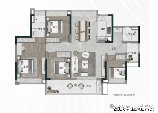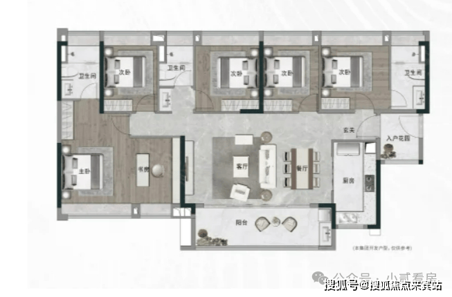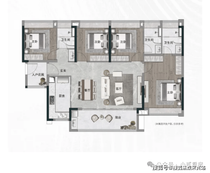 128平四房,除了客厅、餐厅、阳台一体化设计,组成洄游动线并实现动静分离,还做到了四开间朝南,直接拉满通风采光效果,而四房带豪华主套设计,也能满足二胎家庭的生活,一步到位。