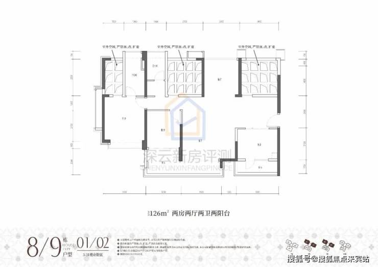 ①高阔奢享:建面约86-176㎡墅境宽宅,改善型三房四房,全南向户型天然舒适;两梯三户低梯户比,多阳台露台设计,悦享阔绰居住空间;方正户型结构搭载更多半开放设计,高阔空间实用率与灵活性大幅提升。