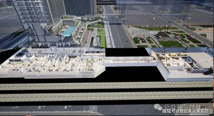 空中连廊: 约500米的空中连廊,接驳双塔的空中会客厅,链接国际商务区地上/地下空间,实现空间更大联动性