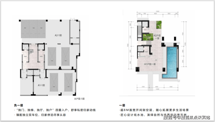 上叠建筑面积165㎡,3F2T3W,赠送164平米(含地下车库62平米,4楼庭院面积83平米以及5楼阳台28平米,共4层(负一层车库首层➕4层➕5层),室内层高3.3米,架空层以及地下车库挑高3.9米。