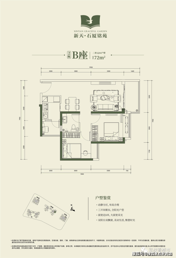🔺2栋B座二单元04、05户型:面积约为72-74㎡的2房2厅1卫。