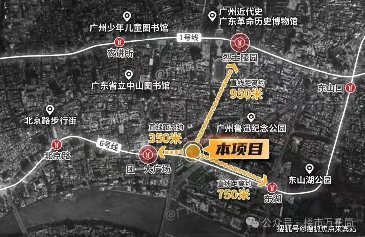 项目距离6号线团一大广场站约350米,东湖站约750米,1号线烈士陵园站约950米。