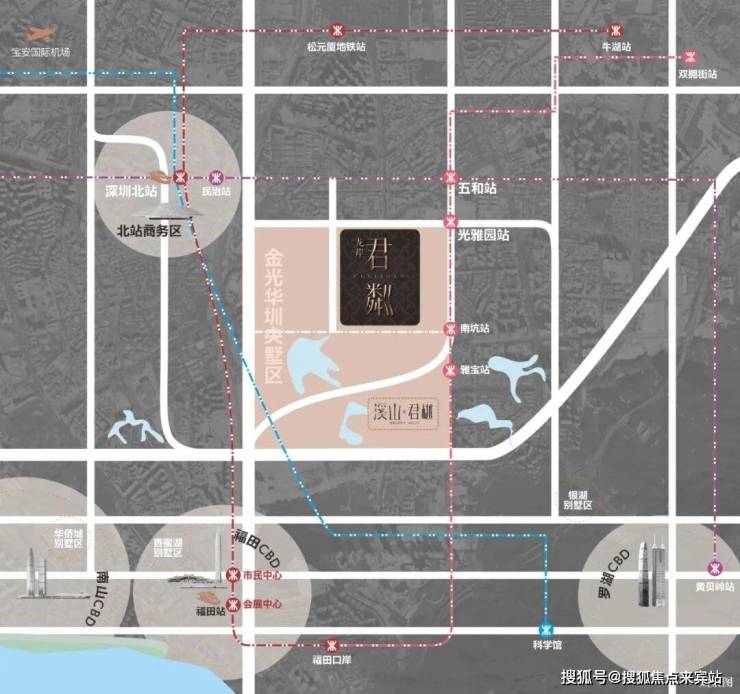 项目周边交通发达,距离10号线光雅园站约400米,向北一站可达五和站,换乘5号线;临近梅观高速、五和大道、布龙路等城市道路,快速畅达深圳各个核心区。(来源:百度测距)