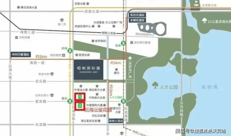 <自驾>:周边分布有多条高速/快速路及区域主干道,如西侧是后海大道,北侧是滨海大道、南侧是东滨隧道,去往南山科技园13分钟,去往前海、福田、宝中大概在15-20分钟。