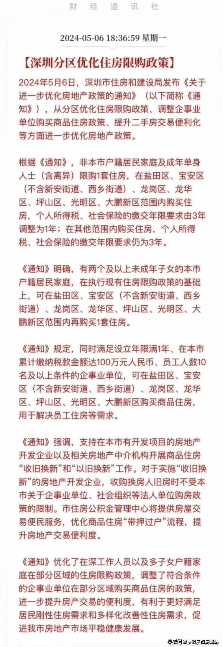 5月6日,深圳市住房和建设局发布了关于进一步优化房地产政策的通知。