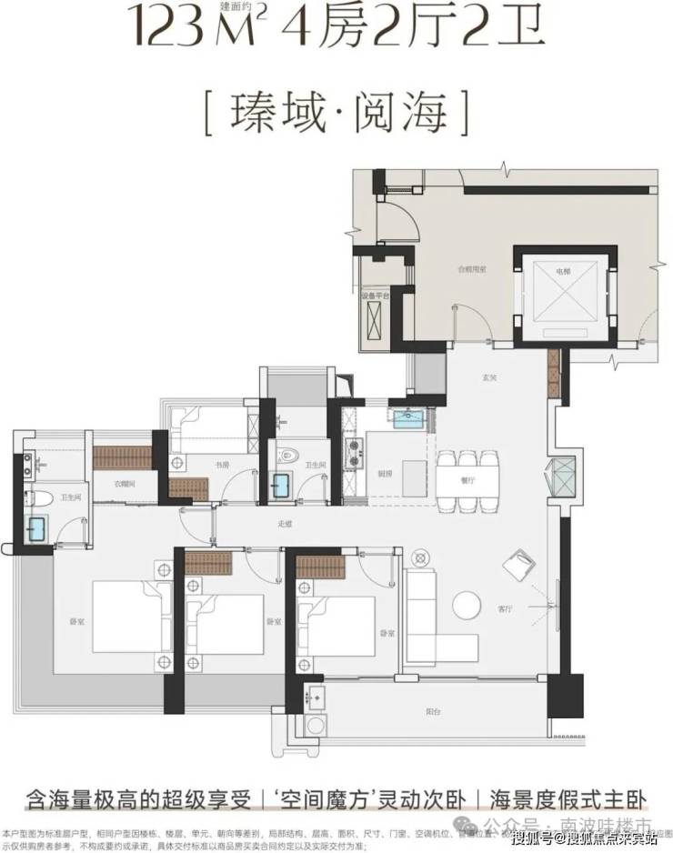 户型方面,主推建面115㎡-143㎡四房,户型使用率超100%,最大可达108%,最高赠送面积近44㎡。