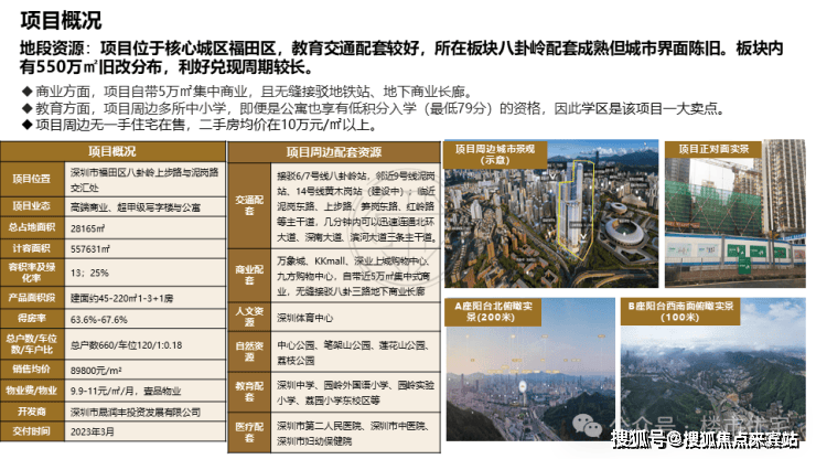 岁宝壹品雄踞福田核心地段、高端智能产业总部基地。紧邻福田新一代网红地标—深圳市体育中心,纵享笔架山、银湖山约2000公顷天然绿肺。项目是6、7号线八卦岭地铁站上盖物业,1站黄木岗核心枢纽,2站岗厦北枢纽,4站深圳北站,快速通达全市,便捷往来全国。项目集凯达环球、AECOM等国际大师团队打造,体量超50万㎡,汇集包含5万㎡高端商业、超甲级写字楼与云端公寓等多种业态,打造为融汇国际风范的云端驭空人居范本。在售为80-220㎡的奢居公寓、是深圳罕有的南北通透、专梯入户的高品质精装准现房产品。