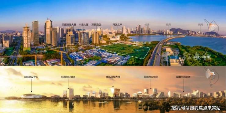 西侧隔海相望就是腾讯全球总部“互联网+”未来科技城,又叫做“企鹅岛”,位于深圳宝安区前海大铲湾岛,占地约130万㎡。