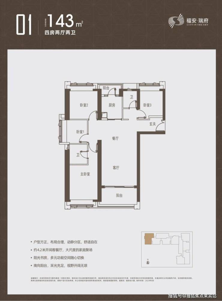 福安·瑞府推出的户型面积区间为97-143㎡,涵盖了3-4房多种选择,满足了不同家庭的居住需求。户型设计上,项目充分考虑了居住的舒适性和实用性,采用南北通透、采光良好的布局方式,确保了每一户都能享受到充足的阳光和清新的空气。同时,宽敞的客厅、舒适的卧室以及功能齐全的厨房和卫生间等设计也充分体现了项目对品质生活的追求。