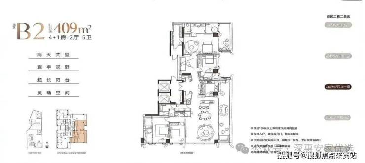 本次加推南区2栋2单元,共162套,主打低区216-287-295-305㎡、高区349-409-430㎡纯大平层。
