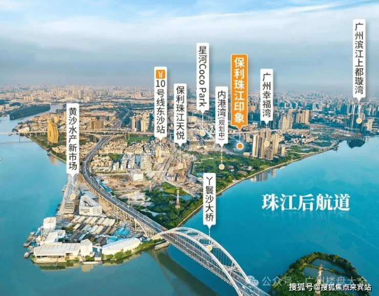保利珠江印象位于白鹅潭沿江经济带的核心区域,项目占地面积1.56万m²,体量不大,只有两栋2T5、32层高的住宅和一所6班幼儿园,东面靠近广州幸福湾,北面是快捷路二期,南面靠近健康港星河COCO Park。因为项目和保利珠江天悦隔得比较近,所以外在配套上大多跟珠江天悦也是共享的。