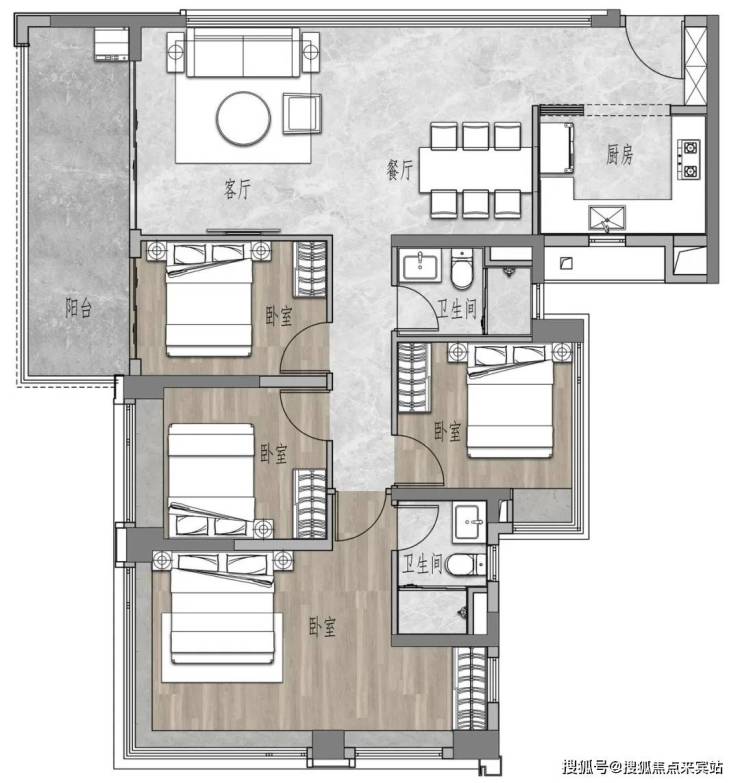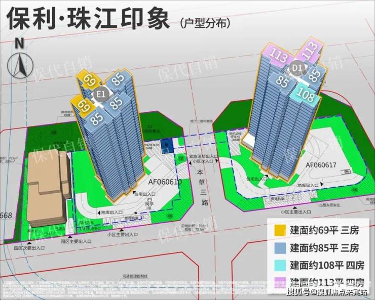 户型面积:建面69-85-108-113m²稀缺三四房户型