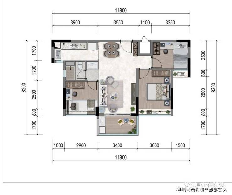 方正通厅设计,连同南向阳台,营造阔绰空间感