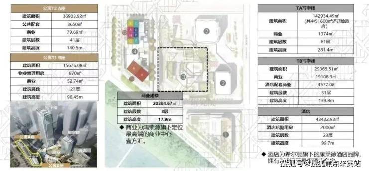 总建筑面积:超34万㎡(2栋甲级办公楼、1栋五星级酒店,2栋服务式公寓)