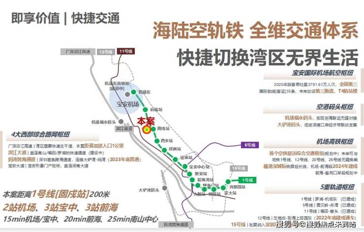 固戍站。(来源:百度地图测距)由此出发,约2站可达深圳机场、约4站可达宝安中心、6站可达前海核心区,还可快速通达机场福永码头、大铲湾码头。
