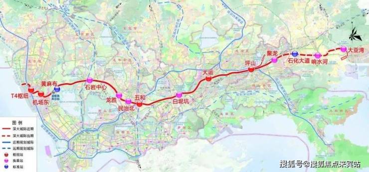 另外项目旁还规划有深大城际“龙胜站”,3站即可到达宝安机场东,该线路全线长约69.2公里,目前仅深圳段动工,是由宝安T4开往惠州大亚湾,途径宝安区,龙华区,龙岗区,终止坪山聚龙站,总设站11座,设计时速160公里,预计在2026年开通运营。