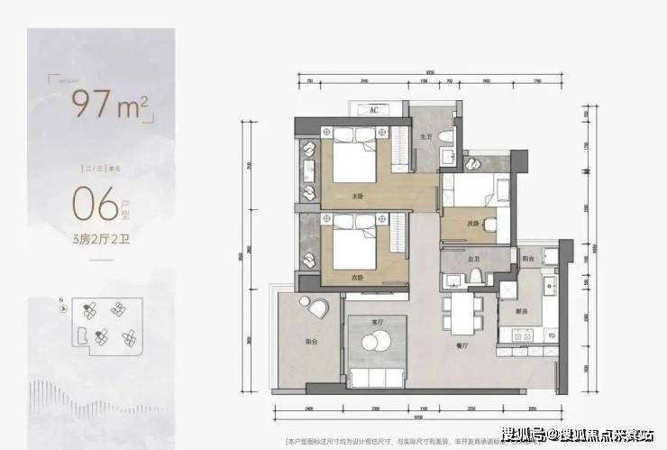 建面约97㎡的户型,产品不论是在功能设计上还是空间利用率上都是极其考究的。三开间朝南;双阳台的设计把每一片空间都高效利用,约3.6米开间,约2.4米进深奢阔景观阳台,让生活每天充满阳光与健康;厨房L型布局,一个转身即可完成洗、切、炒、取;黄金动线、操作流畅;厨房与生活阳台相连,明亮的采光会提升烹饪时的愉悦感。