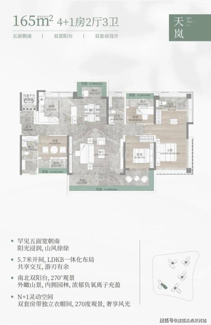 165㎡的大户型更是做到五面朝南,面宽约 17.4 米,近 9 米的景观阳台,对于改善型家庭来说*吸引力。