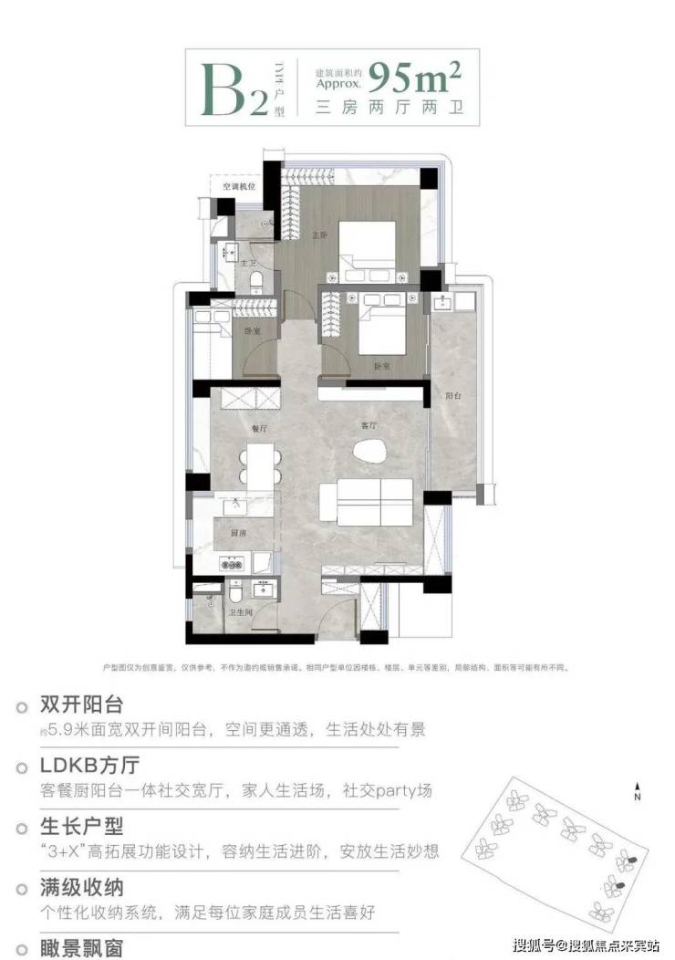 约45平LDKB方厅,尺度堪比市面上120平+户型。约5.9米双开间阳台,四开间朝南,采光无敌!