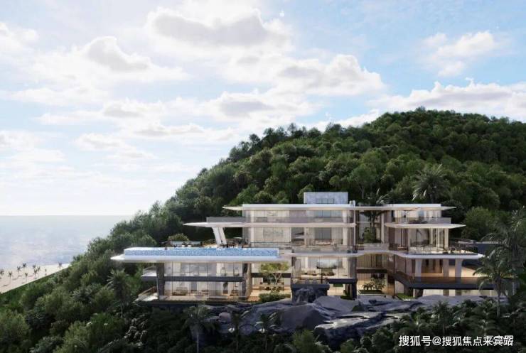 从洛杉矶比佛利山庄到香港太平山,“半山”可谓是全球高端人居的标志。项目依托原生海涯的地形起伏,最高处形成约130米的天然高差,形成27°低坡区和52°高坡区,让山海院落顺坡层层铺开,背山而居,面海而生,形成独特的立体海岸格局。