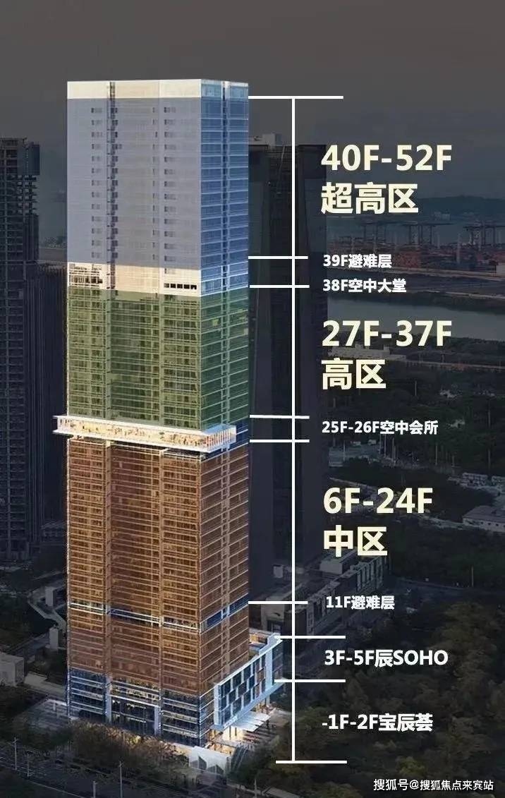 华侨城宝辰,高度约230米,总建面约13.5万㎡,是片区天际线的“制高点”代表,致力于打造集城市中心丰盛配套、公园绿地、精品地铁商业、互联社交空间为一体的区府CBD湾芯公园资产典范。