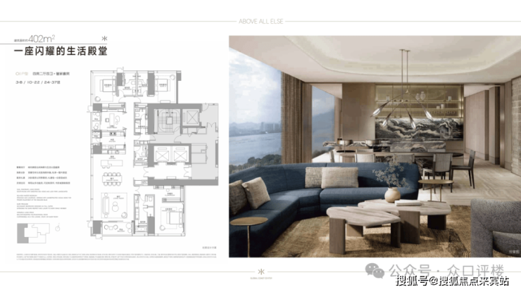 据了解,公寓起步户型不低于200㎡,多为面积约300-1000㎡的宽境大平层产品;首批推出 303/327/400/570㎡大平层,均通燃气且配备超大阳台,部分户型采用 270° 环幕视野设计。
