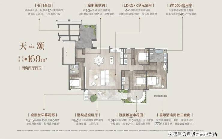 至于约169㎡户型,可以说把四代宅的优势全部发挥出来了。