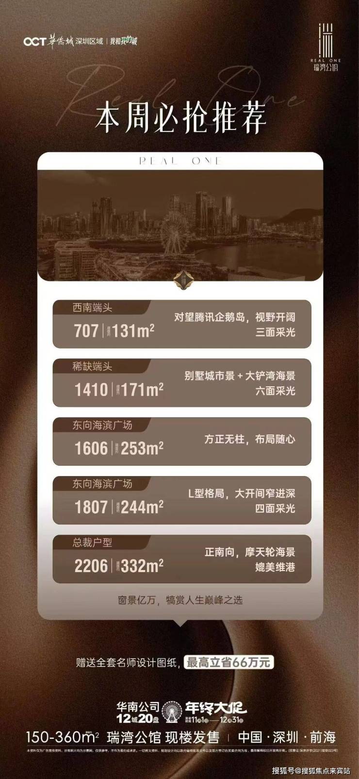 华侨城瑞湾府总占地约7700㎡,建面约10.7万㎡,建筑高度230米,是集4万㎡百年奢华品牌瑞吉酒店、2.8万㎡企业会馆、3.4万超甲级办公和5000㎡精品商业于一体的超高层城市综合体。其中瑞吉酒店是深圳第二家,中国的第十三家。