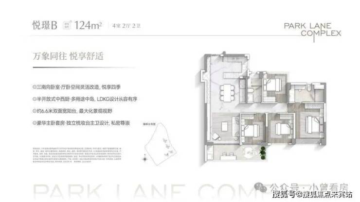改善型家庭的选择更为丰富,124㎡的四房南北通透,将玄关旁的灵动空间并入客厅后,起居室面积可达 28㎡左右,视觉上更显开阔,主卧带 U 型飘窗,两个次卧和客厅都有飘窗延展空间。