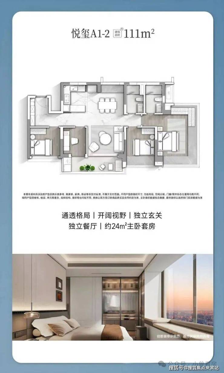 刚需家庭可以关注 108㎡的四房户型,总价 600-670 万左右,进门有灵动空间可作为茶室或客卧,U 型厨房带岛台设计让烹饪动线更流畅,主卧的 270°U 型飘窗带来不错的采光和视野。