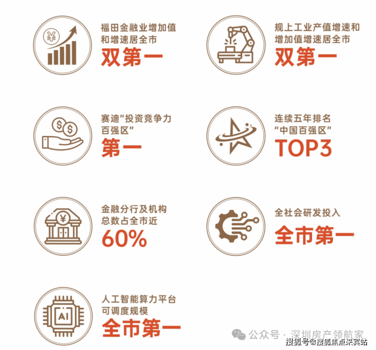 • 深港中轴·福田北门户,“CBD+科技城”双引擎驱动,聚焦AI、新能源、信息技术,华为、大疆、西门子等已抢先落位。