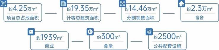 项目总占地面积约4.25万㎡,计容总建筑面积约19.35万㎡,其中可销售研发办公约14.46万㎡,并配备宿舍、商业、食堂、会议中心等,计划于2025年第四季度建成交付。