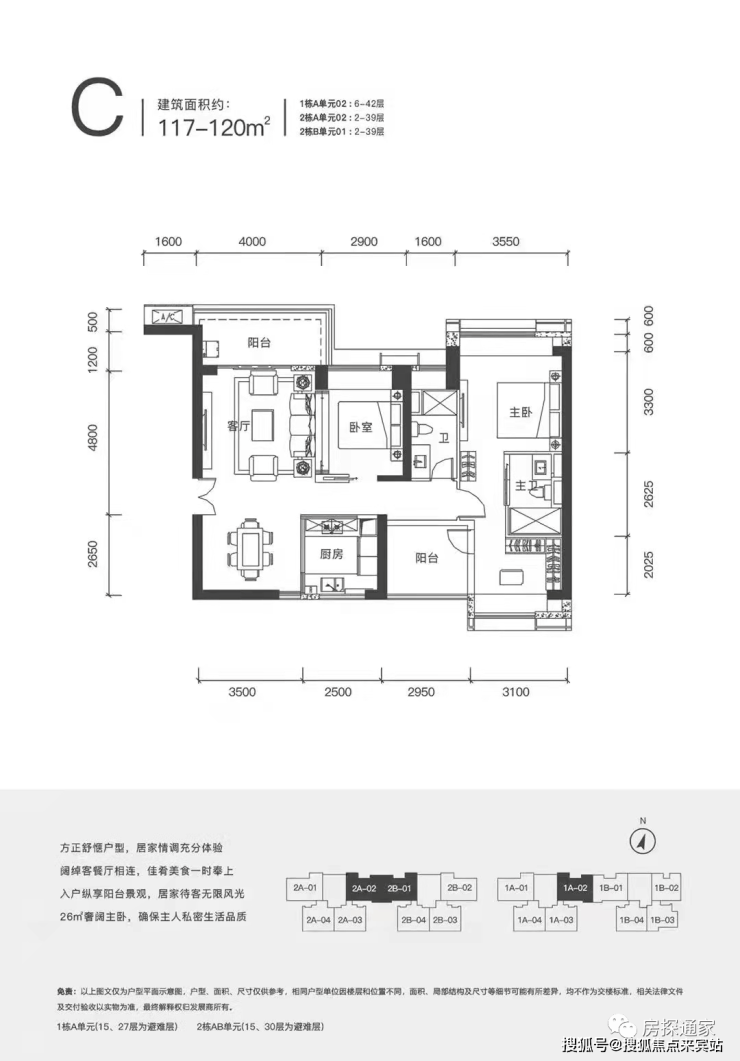 【产品面积段】112-115平3房2卫 、239平4+1房3卫
