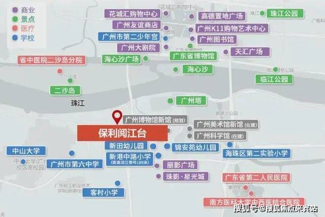 ○ 5大优质学府:广州绿翠实验学校(省级)、广州市第六中学(省级)、新港中路小学(市级)、大江苑小学(区级)、中山大学(重点)