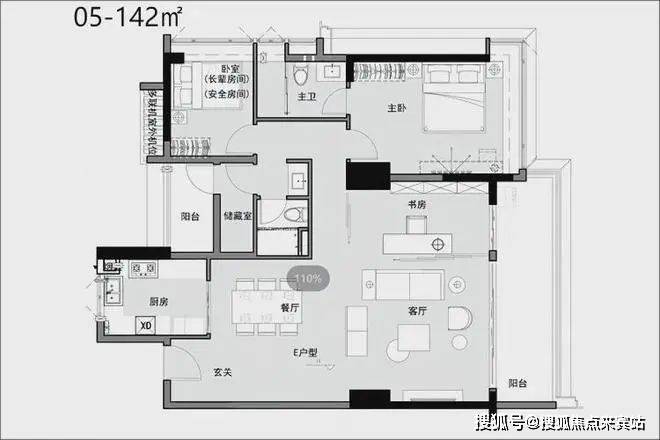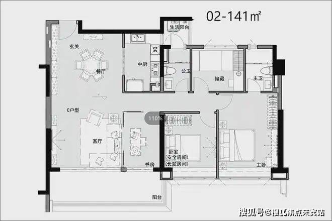 “舒适尺度” 6-7米双联阳台,格局方正实用,动静分区,其中02户型带双阳台,05户型主卧270°飘窗