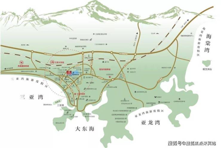 项目西临三亚城市主干道凤凰路,北临荔枝沟路;由项目出发至有轨电车站及三亚市高铁站约2公里,距离G98环岛互通约5公里,与三亚凤凰国际机场约10公里的路程,区域通达性极高。项目地处三亚CBD,区域内有阳光金融广场,中铁置业广场等甲A级写字楼;市人力资源中心、交警队等政府机构环绕,以项目为轴心两公里范围内覆盖了各大高等学府,以及医院、银行、红树林度假世界等全类生活配套。